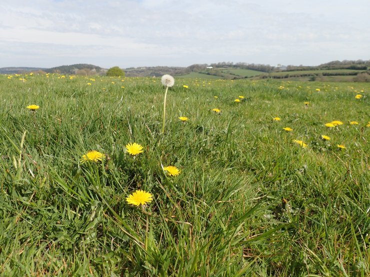 The nicest route is probably the church route, lots of lovely views across to Wales, Beacons in the distance on a clear day. The hedge rows have quite a lot of Blackthorn in flower at the moment and the fields are dotted with hundreds of Dandelions.