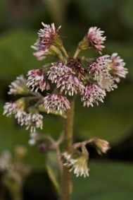 Autumn cohort. In my book it is in the chapter of Winter flowers along with others like Snowdrops and Winter Aconites, but for many of us they are the first beginnings of Spring. Most of us are desperate for the return of warm weather bright skies and more daylight, so even the Winter Heliotrope with its wonderful fragrance is something to clutch on to. Why I am not sure about it is partly because it is not native, it hails from North Africa and as such flowering in December or January is probably a good idea, so maybe its genetic make up has it hard wired into flowering at this time. The other problem I have with this plant is that it is that it is quite invasive. Where I live in West Gloucestershire it is spreading quite rapidly to the detriment of all other species.
