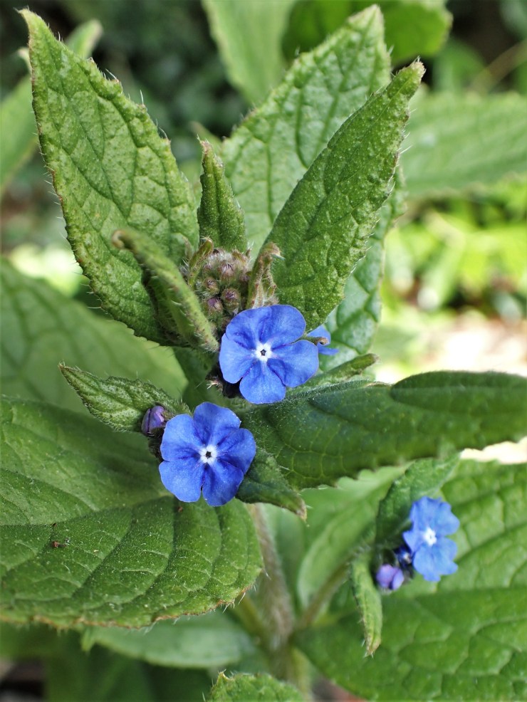 Gradually the yellows gave way to more blues. Green Alkanet, which despite its name has bright blue flowers grew in a big patch by the side of the village church and along the lanes and through the woods the Bluebells made their presence felt. You always seem to get a few precocious ones that start flowering in early April but the main flush is towards the end of the month. There were also several places where Periwinkle was established, sometimes in gardens, sometimes as escapes but their blue to purple colour also added to the general blueness. Even the Violets did their bit although occasionally one could see a white variety.