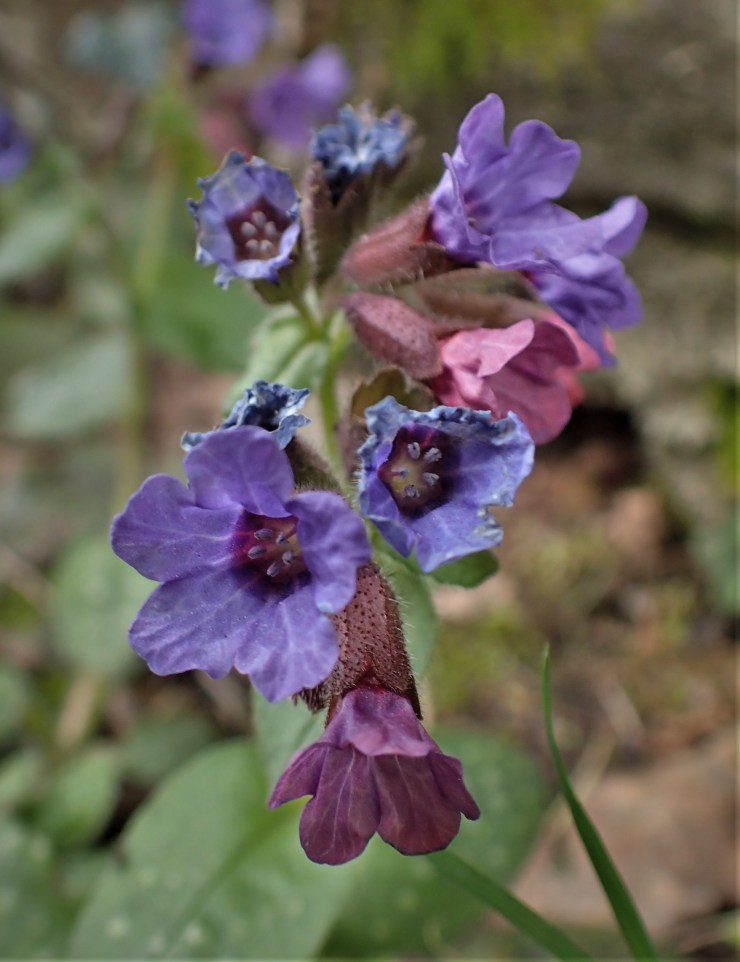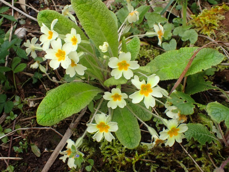 As I am sure will be the case for many people fortunate enough to live in a rural situation we soon discovered many more walks that could be undertaken direct from the house. We basically had three directions to head off in. We live in a valley, so there are lots of ups and downs involved in any walk. The right hand direction provided several routes, some involving a region known as Clearwell Meend. There are quite a few Meends in this area. Meend is a local name which might have its origin in the Welsh Myndd which means mountain but now it denotes a sort of common land. Clearwell Meend had quite a few Primroses on it and a later some Cowslips and even a couple of False Oxlips. In these early days of the pandemic there were lots of Sallow bushes with the beautiful Pussy Willow flowers. On this right hand route we could walk through some ancient woodland with wierd rock formations caused by excavations carried out way back in prehistoric times. These are known as scowles, and some of these local regions have been used for filming such epics as Star wars and Harry Potter films. Here too were Primroses and also Lesser Celandine.